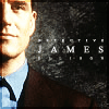 Description: Jim Ellison of the Sentinel on the left side of the frame on a dark background; his name in on the right side of frame